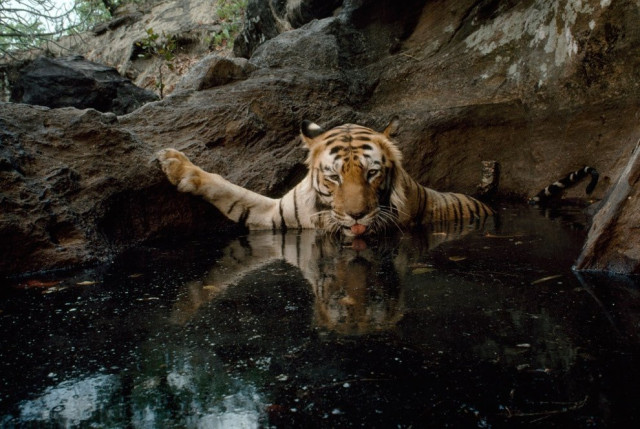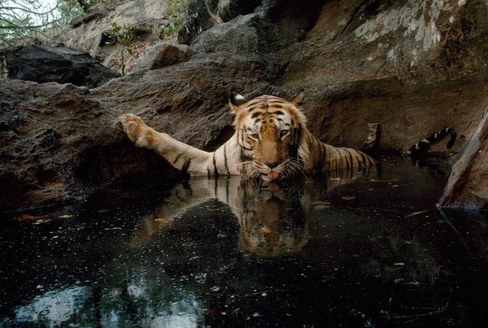 15. Індія, 1995 рік. Ця тигриця була сфотографована за допомогою фотопастки в національному парку Бандхавгарх. (Photo by Michael Nichols)