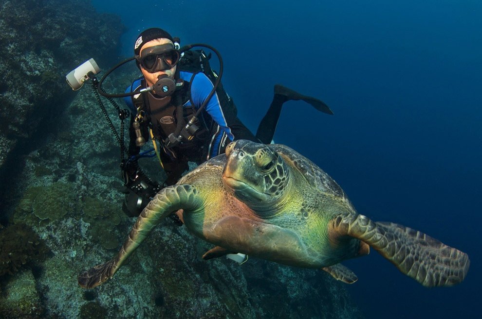 20. Острів Кокос, Коста-Ріка. Морський біолог і дослідник з National Geographic Енрік Сала (Enric Sala) плаває із зеленою черепахою біля берегів острова Кокос, Коста-Ріка. (Photo by Octavio Aburto)