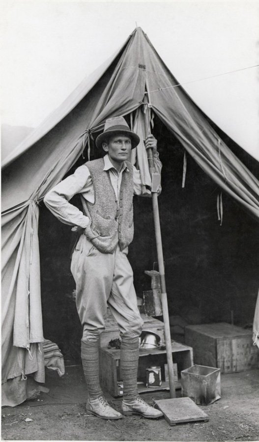 3. Мачу-Пікчу, Перу. Хайрам Бінгем позує для аматорського знімка біля свого намету в Мачу-Пікчу, загубленому місті інків в перуанських Андах. Організація National Geographic спонсорувала розкопки, що проводились Бінгемом в 1912 - 1915 роках. (Photo by Hiram Bingham)