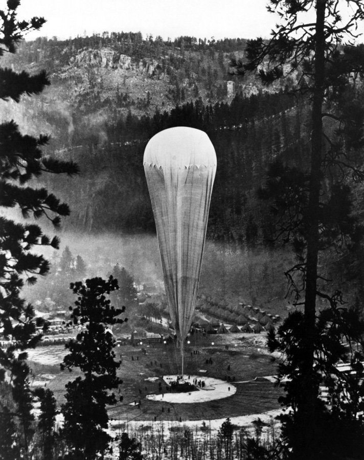 6. Південна Дакота, США, 1935 рік. Стратостат National Geographic готується підніматися в небо недалеко від міста Рапід-Сіті, Південна Дакота, 11 листопада 1935 року. Два аеронавта піднялися в стратосферу на висоту близько 22, 5 кілометрів. (Photo by H. Lee Wells)