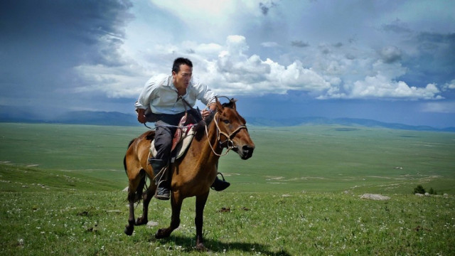 19. Монголія. Дослідник з National Geographic Альберт Ліїн (Albert Lin) скаче галопом по степу на півночі Монголії під час пошуку могили Чінгісхана та інших археологічних пам'яток. (Photo by Mike Hennig)