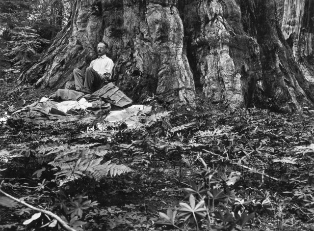 4. Каліфорнія, США, 1915 рік. Гілберт Х. Гросвенор (Gilbert H. Grosvenor), перший редактор журналу «National Geographic Magazine», який працевлаштований на повний робочий день, пробуджується після нічного сну під величезною секвоєю під час своєї першої поїздки в гори Сьєрра-Невада, Каліфорнія. Після цієї поїздки Гросвенор лобіював прийняття закону про створення Служби національних парків США в 1916 році. (Photo © Gilbert H. Grosvenor Collection)