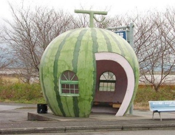 І знову креативна автобусна зупинка з кавуна в Ishaya, Японія.