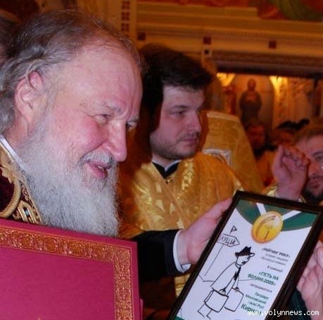 Патріарх Московський і всієї Русі Кіріл отримує від Митрополита Луцького і Волинського Ніфонта диплом та подарунок від інтернет-видання «Волинські новини».