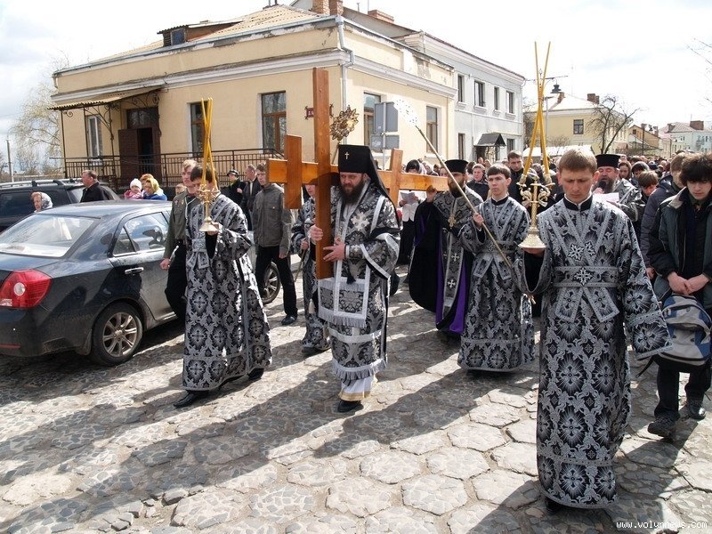 Архієпископ Луцький і Волинський Михаїл 2 квітня у Луцьку несе символічний хрест під час загальноміського Страсного хресного ходу.