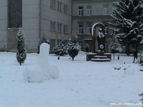 «Скульптура» загадкової форми, виліплена невідомими бешкетниками біля приміщення Луцької міської ради 12 січня