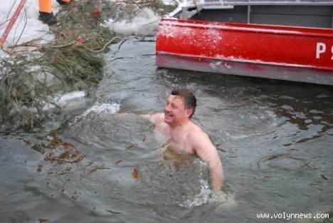 Луцький міський голова Богдан Шиба купається в ополонці на річці Стир у день Хрещення Господнього 19 січня.
