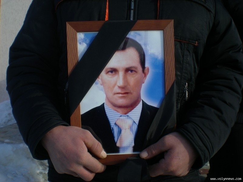 Рідня під час похорону 9 лютого тримає у руках портрет загиблого Петра Матюка, якого на автозаправці у Любешові 7 лютого розстріляв п'яний майор прикордонних військ Віталій Лисюк.