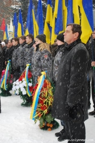 Заступник начальника управління з питань внутрішньої політики Волинської облдержадміністрації Віктор Сливка на Меморіалі вічної Слави в Луцьку під час відзначення визволення Луцька від фашистів 2 лютого.