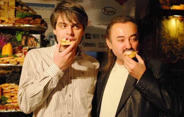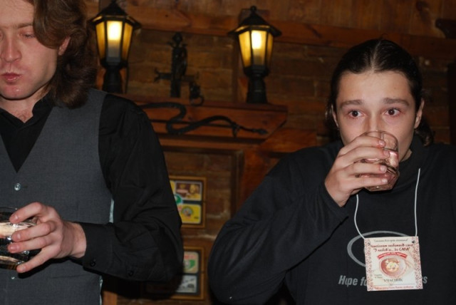 Ідеологу чемпіонату Віталію Іваницькому і представнику книги рекордів України Ігорю Підчибію наливають \"до сала\". Під сало? Залюбки!
