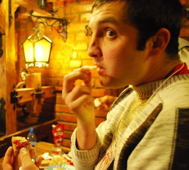 Михайло Киденько - рекордсмен-саложер: з’їв один кілограм сала за 16 хвилин 42 секунди. Після чого почував себе дуже навіть бадьоро: аж танцював.