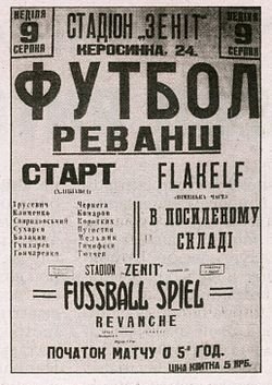 Першу гру 6 серпня «Флакельф» програв з рахунком 1:5. По гарячих слідах 9 серпня відбувся матч-реванш, який німці знову програли — 3:5 (а не 0:6, за радянською легендою). Оце і був матч, пізніше названий «матчем смерті».