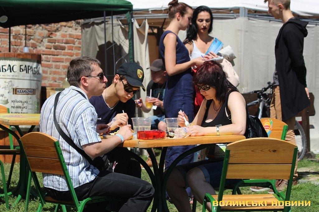 Так, під музичний супровід почастуватися смаколиками в Замку Любарта уже можна було з 11 години. Згодом юні моделі представляли одяг різних країн світу.А по тому відбувся показ колекції лучанки-учасниці Lutsk Fashion Weekend Жанни Тріль.Власне, після цього можна було й фестивалити. Ті, хто прийшов родинами з дітками, мали змогу розважити своїх малят на майстер-класах, в ігровій зоні чи за столами для активних ігор.На всій території майоріли прапори кількох десятків країн. Кожен шукав те, що йому до смаку. Хтось віддавав перевагу звичним стравам, хтось вирішив спробувати екзотичних делікатесів, а дехто купував «стратегічні запаси» як-от козячий сир, в’ялені помідори чи «приперчений джем».