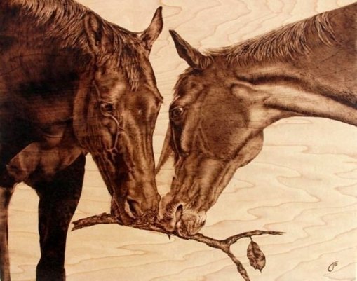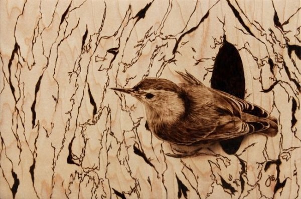 Художниця зі США Джулі Бендер створює свої картини, випалюючи їх на дереві. Вона - майстер пірографіі.