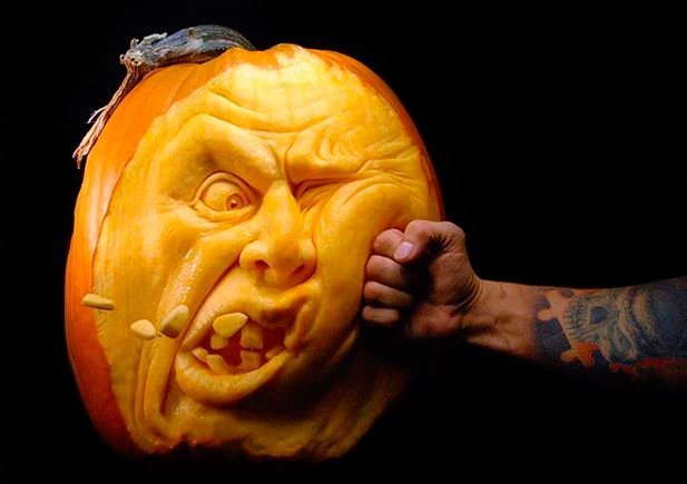 Американські умільці Рей Віллафейн та Енді Берггольц створюють оригінальні роботи із звичайних гарбузів. Чоловіки вирізають на рослинах відомих персонажів мультсеріалів та фільмів.