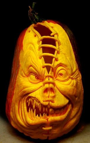 Секрет майстра – гарбуз має бути важкий, із достатньо товстою шкірою, щоби вирізати з нього 3D обличчя.