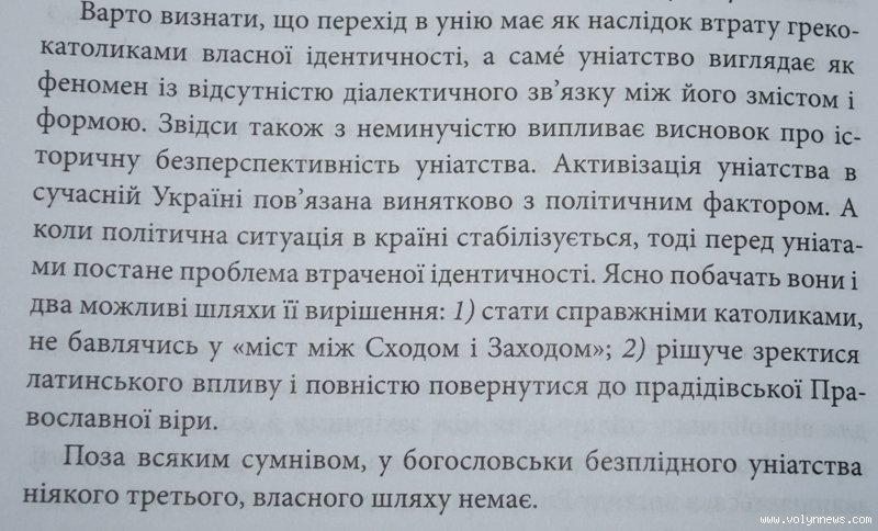 В Луцьку презентували богословську книгу про безперспективність уніатства «Уніатство: Богословські аспекти»: її автор зробив висновок, що греко-католики повинні зробити історичний вибір – або перейти в католицизм, або зректись латинського впливу і навернутись у православ’я.