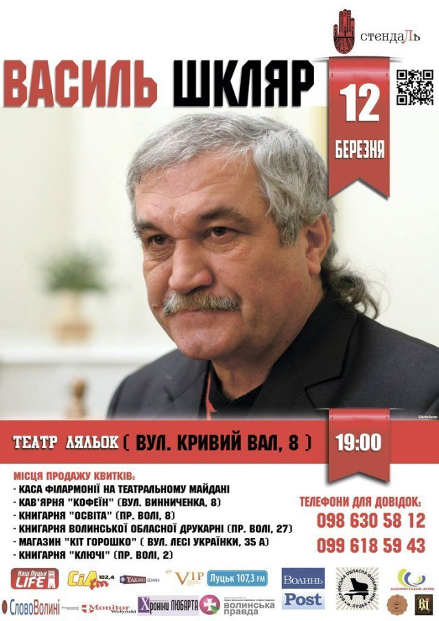 Сучасний український письменник, батько українського бестселера, як його називають деякі літературні оглядачі, Василь Шкляр приїде в четвер, 12 березня, у Луцьк.
