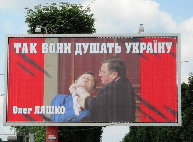 В регіонах України почали з’являтися бігборди із фотокадрами бійки народного депутата Олега Ляшка і віце-спікера Адама Мартинюка.