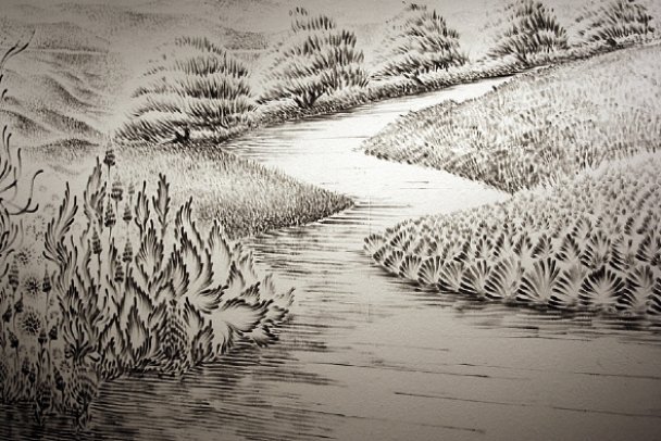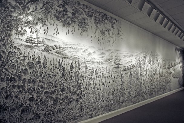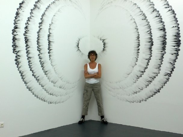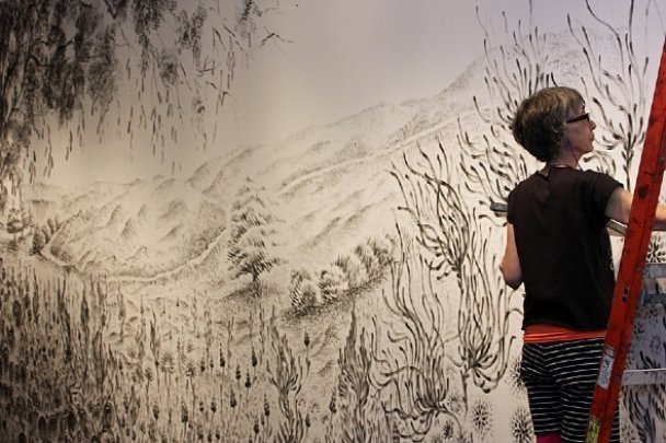 Американка малює не пензлем, а пальцями. А замість фарб використовує звичайне вугілля.
