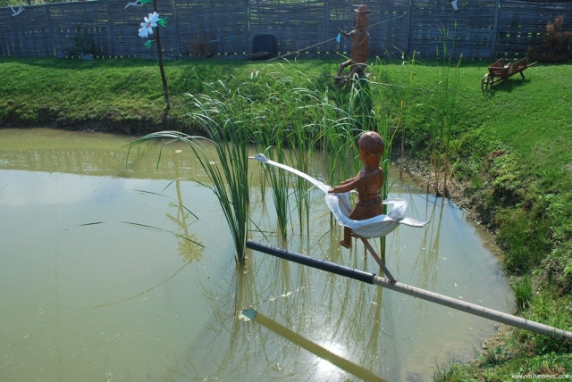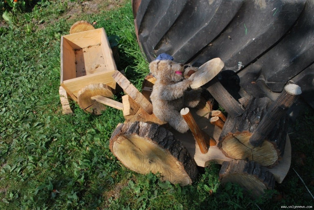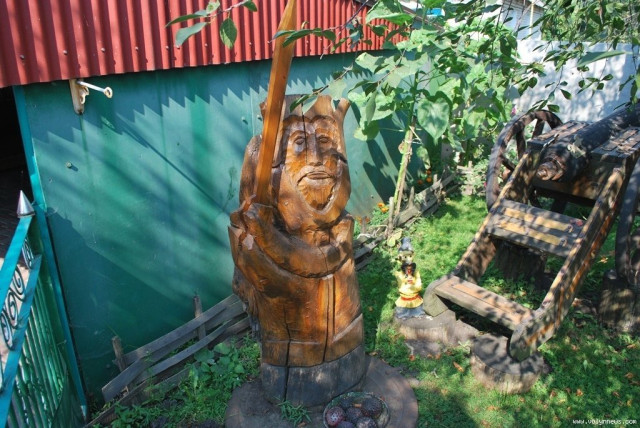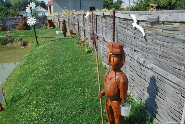 Різьбою захопився коли народилися внуки. Каже, що все для них. Їздив по Україні, підглядав сюжети, як перші почав робити – було важко, думав: «Нащо почав?» Але згодом виходило, та й людям подобається. Почав прикрашати подвір’я.