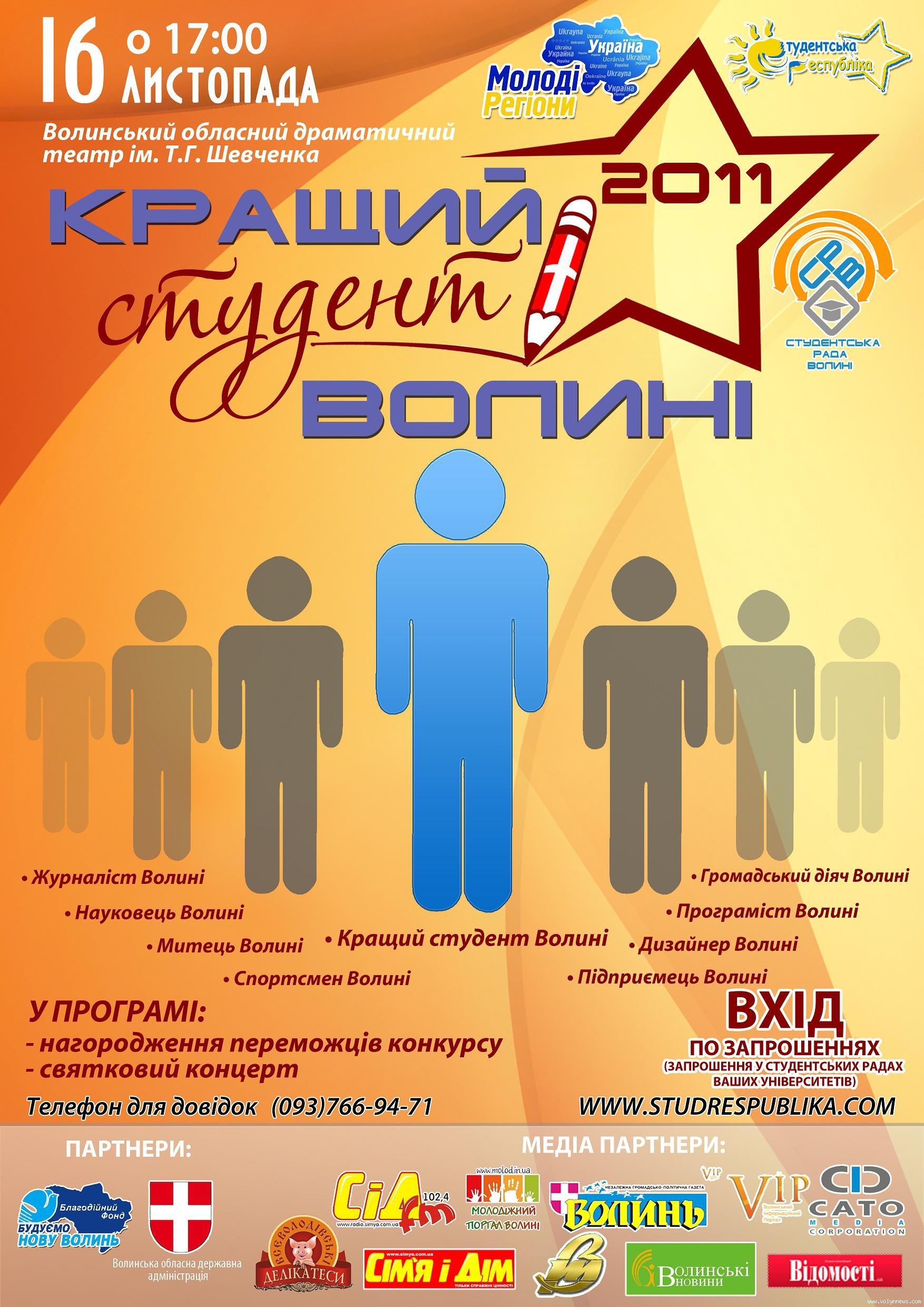Уже через тиждень - 16 листопада – о 17.00 у Волинському облмуздрамтеатрі імені Тараса Шевченка відбудеться фінал конкурсу «Кращий студент Волині 2011».