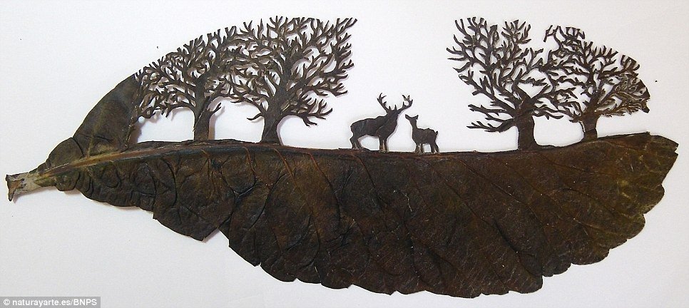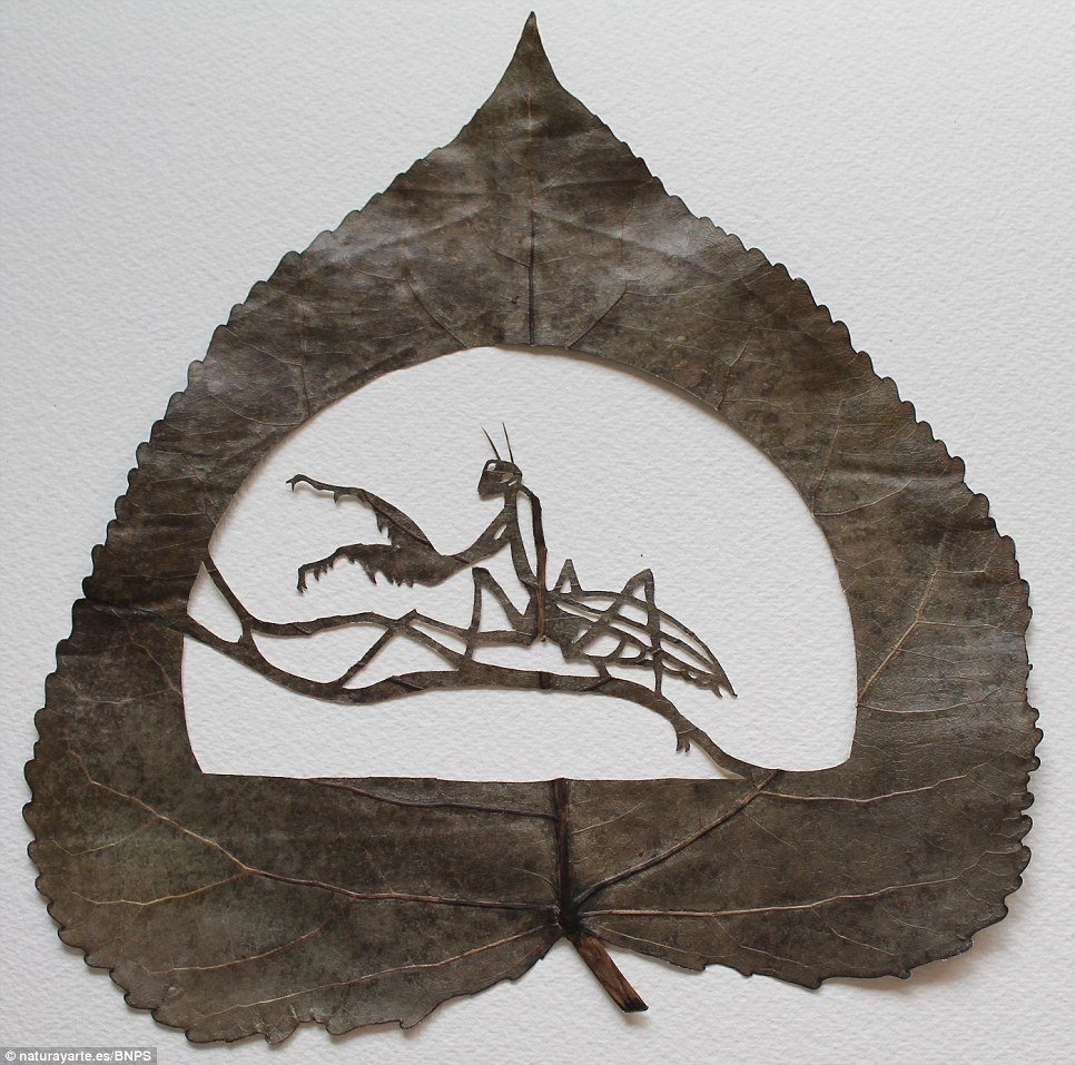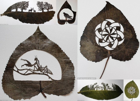 «Мене надихнула гусениця, яка поїдала листя, і я подумав:«Чому б не спробувати самому вирізати малюнок на аркуші?» Після цього я вивчив різні техніки різьблення по листю, які допомогли розвинути мою нинішню роботу. Я починаю з того, що збираю листя, мию, сушу, пресую і ріжу. А поки воно знаходяться під пресом, я роблю начерк майбутнього візерунка. Потім я накладаю малюнок на лист і починаю акуратно вирізати. Різьблення ‒ найскладніша частина роботи, тому що листя ‒ дуже крихкий матеріал, і щонайменша помилка може зіпсувати тижні роботи. Я вдосконалюю цю техніку вже більше чотирьох років. Я зробив і продав багато таких різьблених листочків, але найперший я зберіг для себе і поставив в рамочку», ‒ розповідає художник.