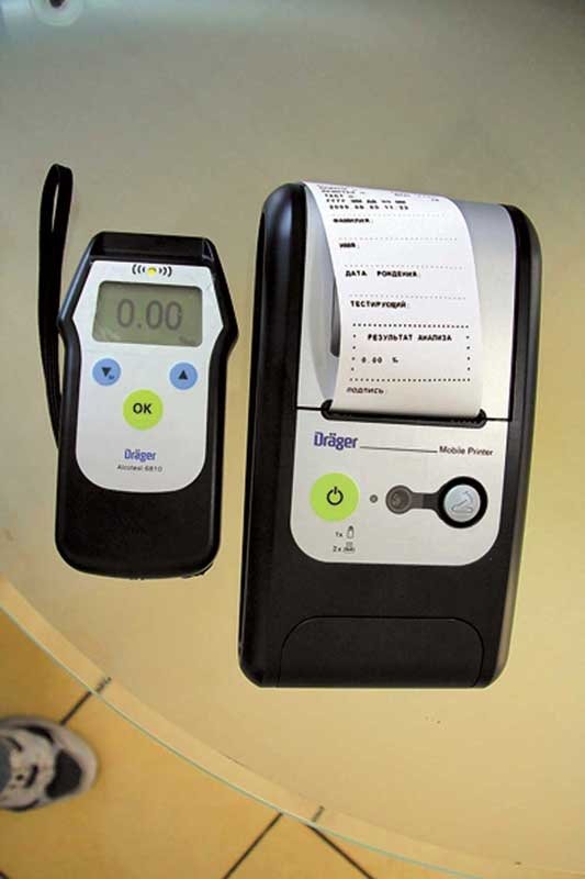 Крім цього, на місці прилад за допомогою доданого в комплекті принтера робить роздруківку результатів тесту. У ній вказані дата і час, дані про водія і результати аналізу. Обовязково ставиться підпис працівника ДАІ.