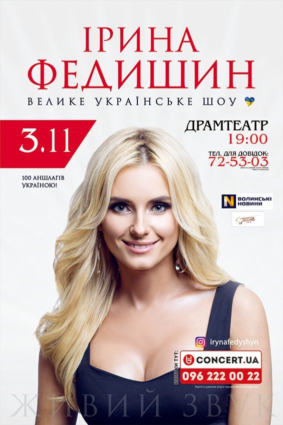 Концерт Ірини Федишин у Волинському обласному академічному музично-драматичному театрі імені Тараса Шевченка | 3 листопада, п'ятниця