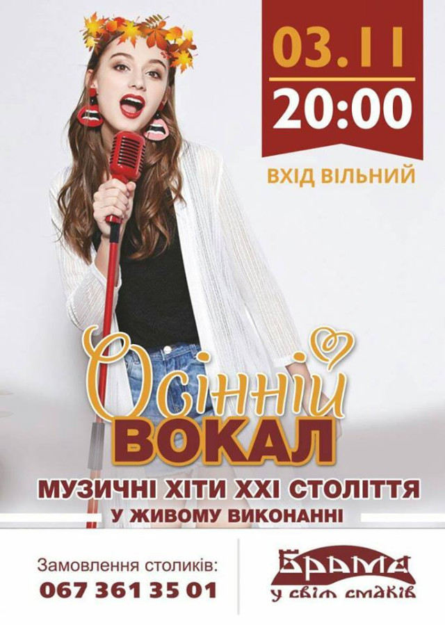 «Осінній вокал» у ресторації «Брама» | 3 листопада, п'ятниця