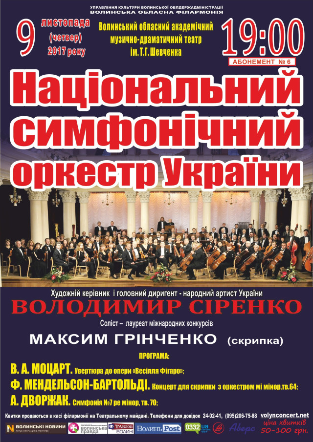 Концерт Національного симфонічного оркестру у Волинському обласному академічному музично-драматичному театрі імені Тараса Шевченка | 9 листопада, четвер