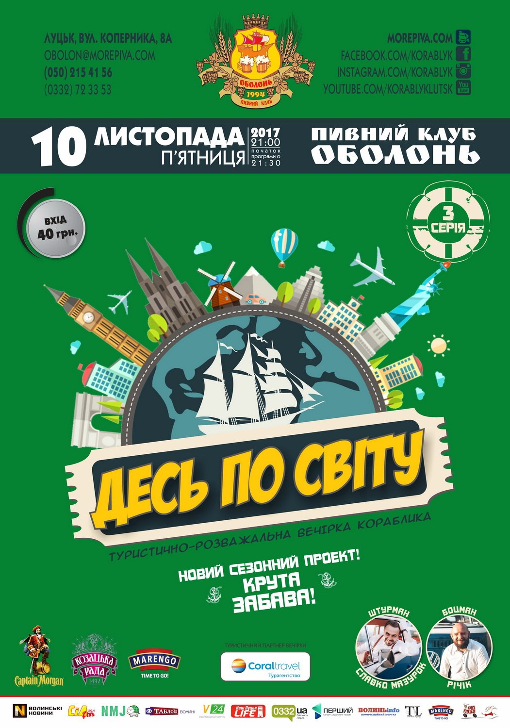 Вечірка «ДЕСЬ ПО СВІТУ» у «Кораблику» | 10 листопада, п'ятниця