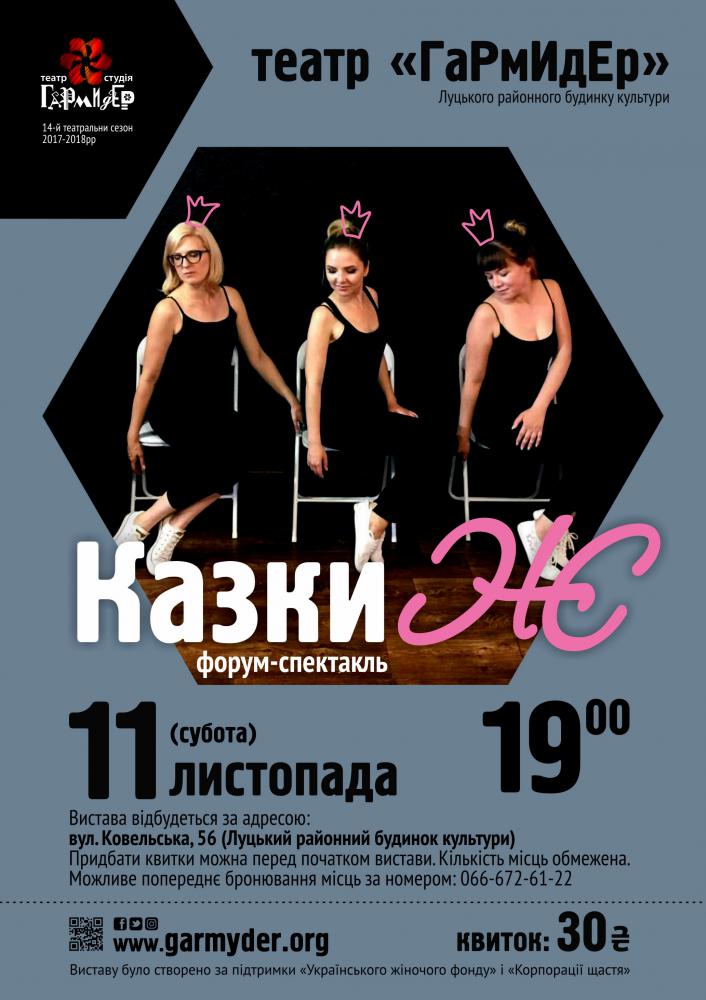 Вистава «Казки Ж» або чоловікам вхід заборонений у Луцькому районному будинку культури | 11 листопада, субота