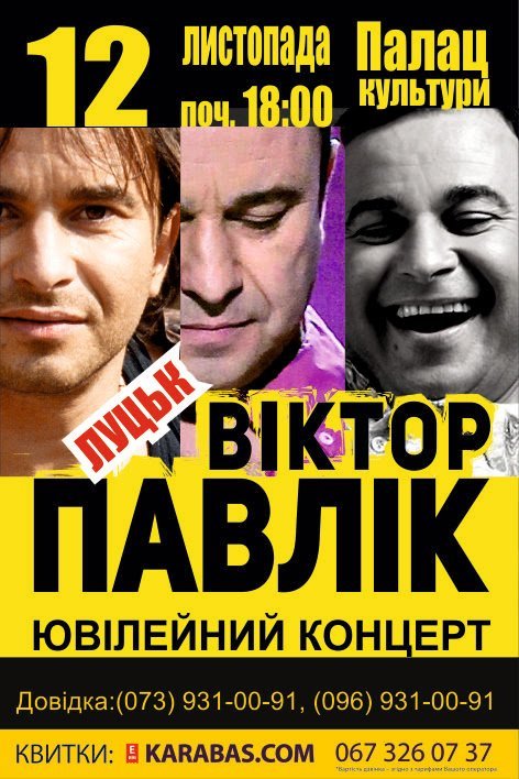Концерт Віктора Павліка у Палаці культури міста Луцька | 12 листопада, неділя