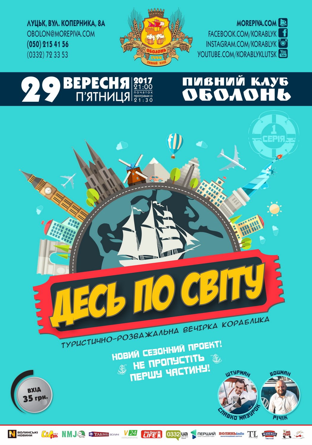 Туристично-розважальна вечірка «День по світу» у «Кораблику» | 29 вересня, п'ятниця