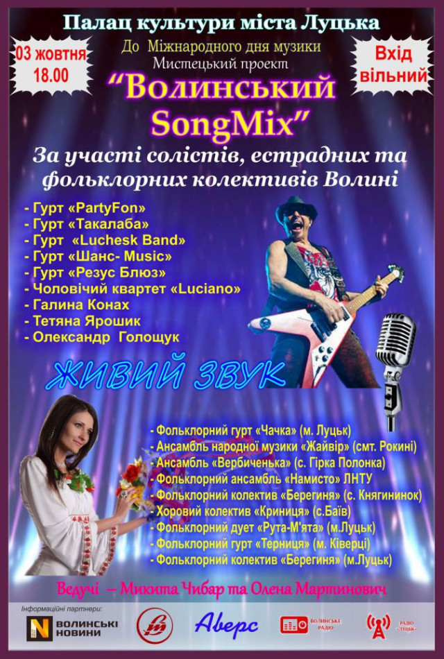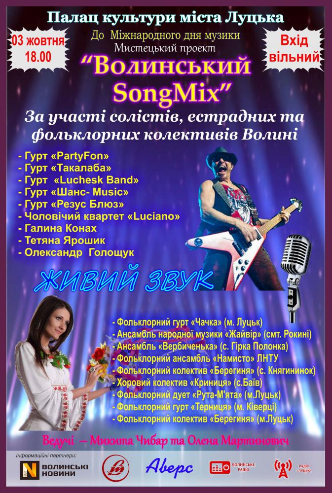 Мистецький проект «Волинський SongMix» у Палаці культури міста Луцьк | 3 жовтня, неділя