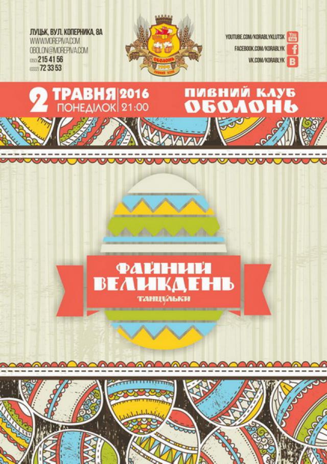 «Завершується Піст і є нагода нарешті трішки відірватись! Спеціально до Великодніх свят, з якими, до речі, щиро Вас вітаємо, ми вирішили зробити великодні танцульки! Багато української музики та світових хітів, жвавий настрій, кілька кухлів пива та ще один хороший вечір у вашому житті», - повідомляють організатори дійства та закликають гостей одягати вишиванки.