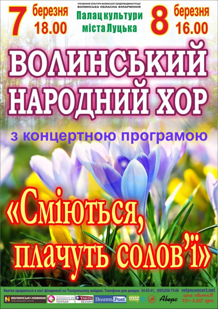 Концерт Волинського хору «Сміються, плачуть солов'ї» у Палаці культури міста Луцька | 7-8 березня