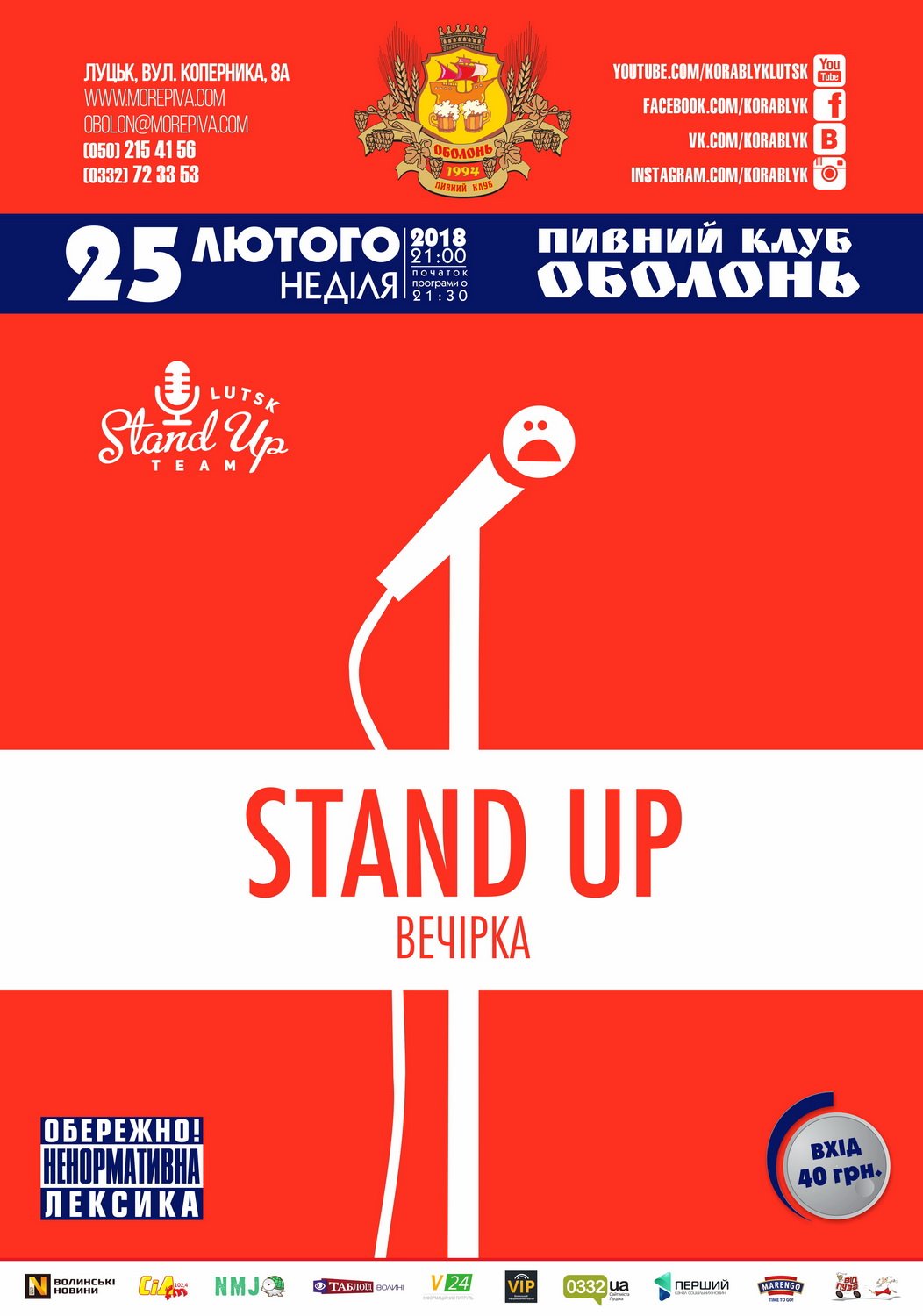 Вечірка «STAND UP» у пивному клубі «Оболонь» | 25 лютого