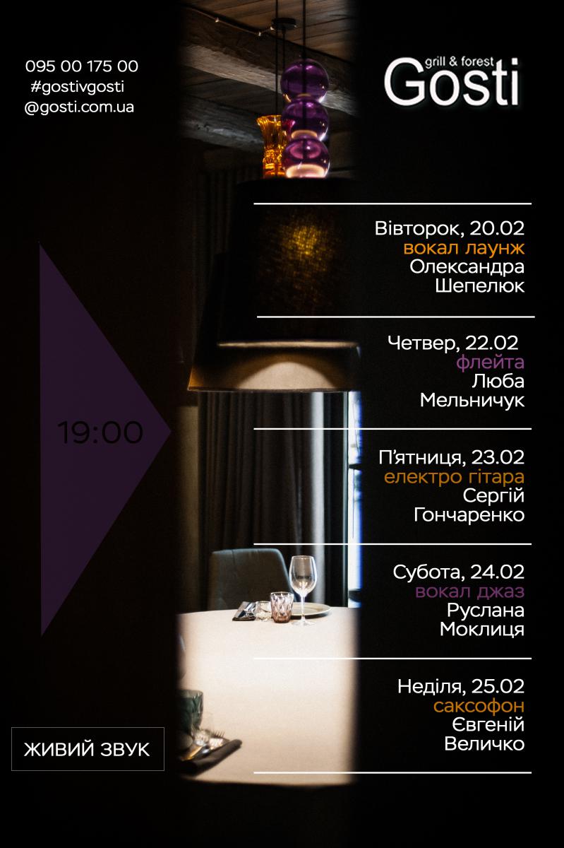 Вечір живого звуку у ресторані «Gosti» | 20-25 лютого