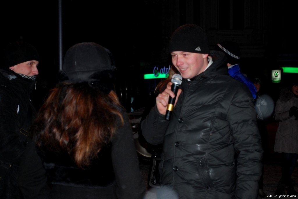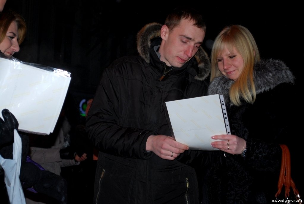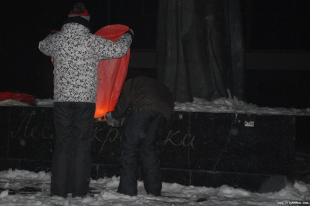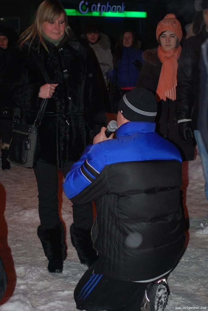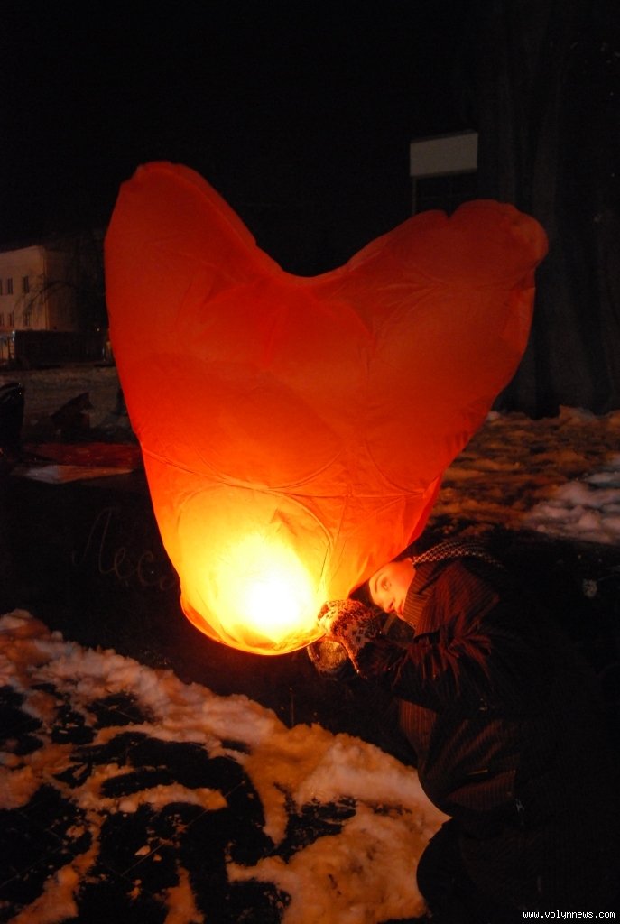 Після завершення романтичних зізнань на Театральному майдані можна було запалити небесні ліхтарики. Як розповів організатор такої ініціативи Богдан Муха, така акція у Луцьку – не нова, проте цікава і неординарна. На честь Дня закоханих він навіть зробив знижку лучанам – один ліхтар коштував 30 гривень, замість звичних 35-ти.