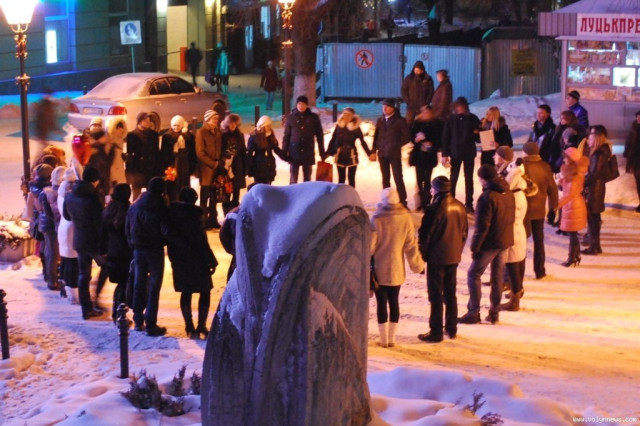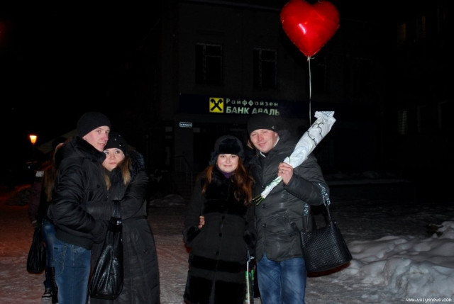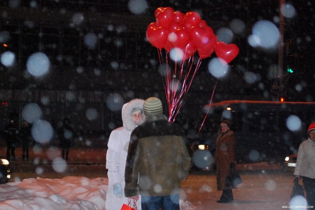 Закохані пари у Луцьку відзначали своє «професійне свято». Попри морозну погоду, в центрі міста зібралося багато охочих провести вечір Дня святого Валентина удвох.