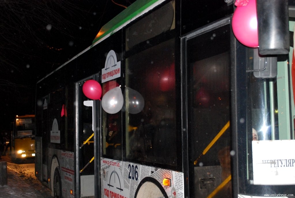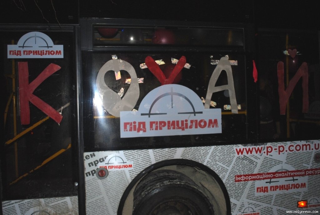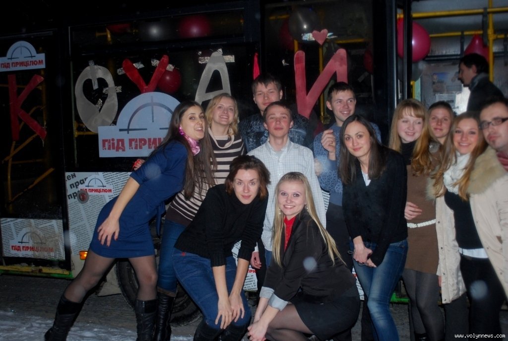 Тим часом вулицями обласного центру рухався незвичний тролейбус. Молоді активісти винайняли транспортний засіб у комунальників, розклеїли його написом «Кохайте» та повітряними кульками. На зупинках, коли відчинялися двері тролейбуса, усі пасажири закликали лучан кохати і бути коханими.