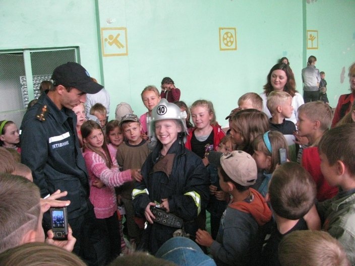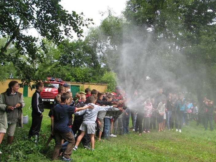 Дітям продемонстрували пересувну експозицію виставки-музею цивільного захисту, розповіли основні правила безпеки та першочергові заходи у виникненні надзвичайної ситуації. Найбільше захоплення дітей викликав показ подачі води на місце умовної пожежі за допомогою генератора піни.