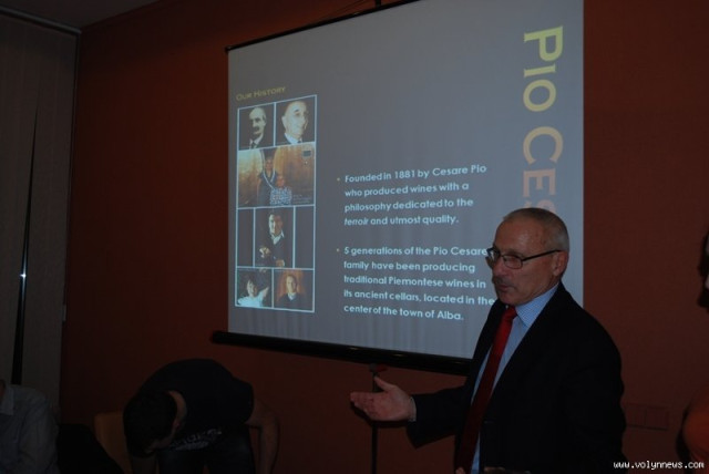 Ще перед дегустацією італієць розповів про історію виноробень «Pio Cesare» та усі тонкощі виробництва вина сортів, які запропонували спробувати лучанам.