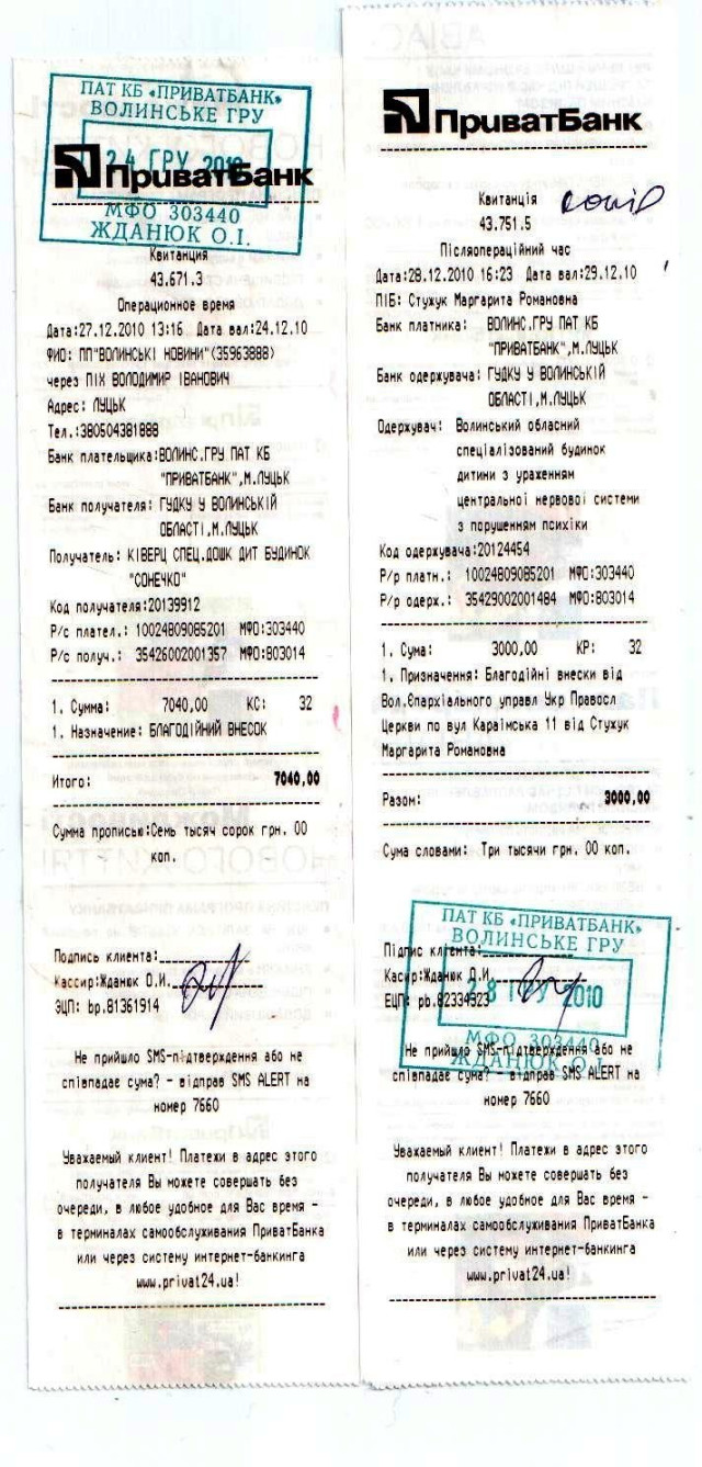 На ньому для дитячого будинку «Сонечко» в Ківерцях та Волинського обласного спеціалізованого будинку дитини зібрали 12 тисяч 700 гривень.