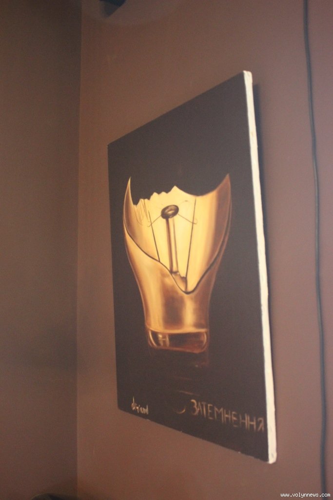 Щодо картини «Затемнення», авторка пояснила, що для людини, яка довгий час перебуває в одній кімнаті, єдиним затемненням є розбита лампочка.