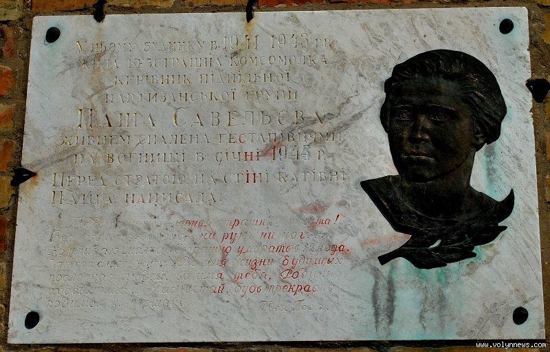 Від пам’ятника активістці партизанського підпілля в роки Великої Вітчизняної Війни Паші Савельєвій на території історико-культурного заповідника «Старе місто» залишилася хіба що табличка. Нагадаємо, що в 2006 році невідомі вкрали майже 200-кілограмовий пам’ятник з чистої бронзи, який стояв тут 34 роки.