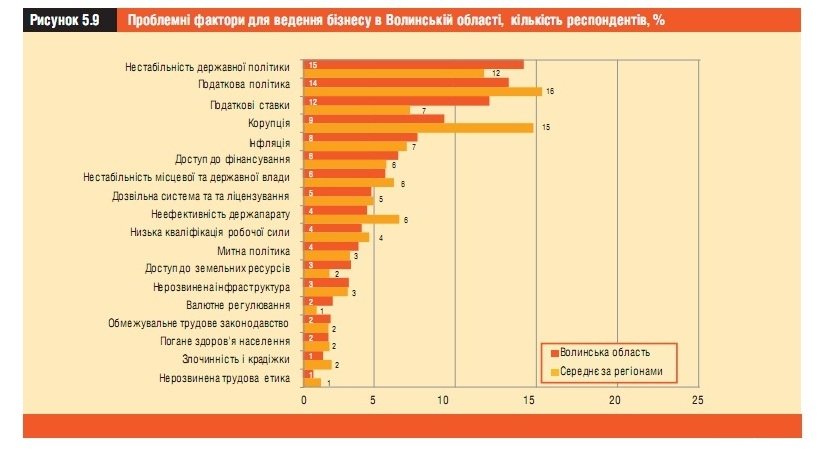 До всього, найпроблемнішими факторами для ведення бізнесу названо нестабільність державної політики та податкові ставки.