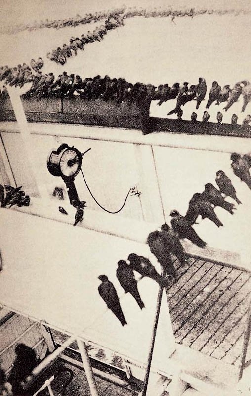 Птахам у відкритому морі під час ураганів іноді доводиться шукати захисту на палубах кораблів, що опинилися поблизу. Саме це і зафіксовано на знімку у серпні 1926 року, коли судно «С.С. Уест Куічі» проходило через ураган у Мексиканській затоці.